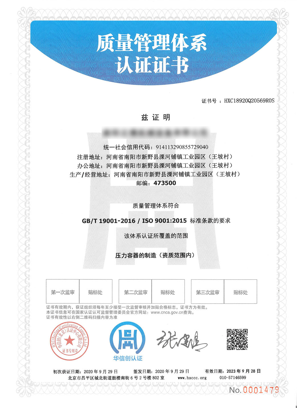質量管理體系認證證書